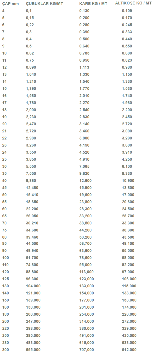 PASLANMAZ ÇUBUK AĞIRLIK CETVELİ